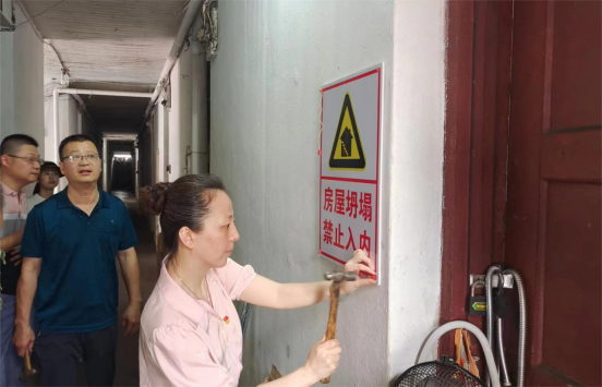 炎炎夏日,在支部書(shū)記、公司總經(jīng)理陳麗雪的帶領(lǐng)下,大家冒著酷暑,對(duì)星光社區(qū)50年以上老舊房屋等重點(diǎn)房屋開(kāi)展專(zhuān)項(xiàng)整治,逐戶逐棟排查,查看老舊房屋安全隱患、了解房屋居住人數(shù)、安全措施等情況。同時(shí),組織全體黨員干部在老舊房屋上張貼安全警示牌、告知牌、拉警示帶等,并明確告知用戶各樓棟管理人員及安全員的聯(lián)系電話等。黨員們分工協(xié)作,汗流浹背,確保社區(qū)每一處老舊房屋安全能夠得到保障。